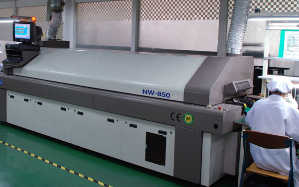 無(wú)鉛八溫區(qū)熱風(fēng)回流焊設(shè)備,用于表面貼裝基板的整體焊接,整機(jī)采用計(jì)算機(jī)控制,具有Win2000操作界面和豐富的軟件功能、具有自動(dòng)傳送的隧道式結(jié)構(gòu),由多預(yù)熱區(qū)、焊接區(qū)、風(fēng)冷區(qū)組成,全熱風(fēng)加熱方式,上、下溫區(qū)獨(dú)立熱源,各加熱區(qū)單獨(dú)PID控溫,具有通訊控制的無(wú)級(jí)調(diào)速功能。